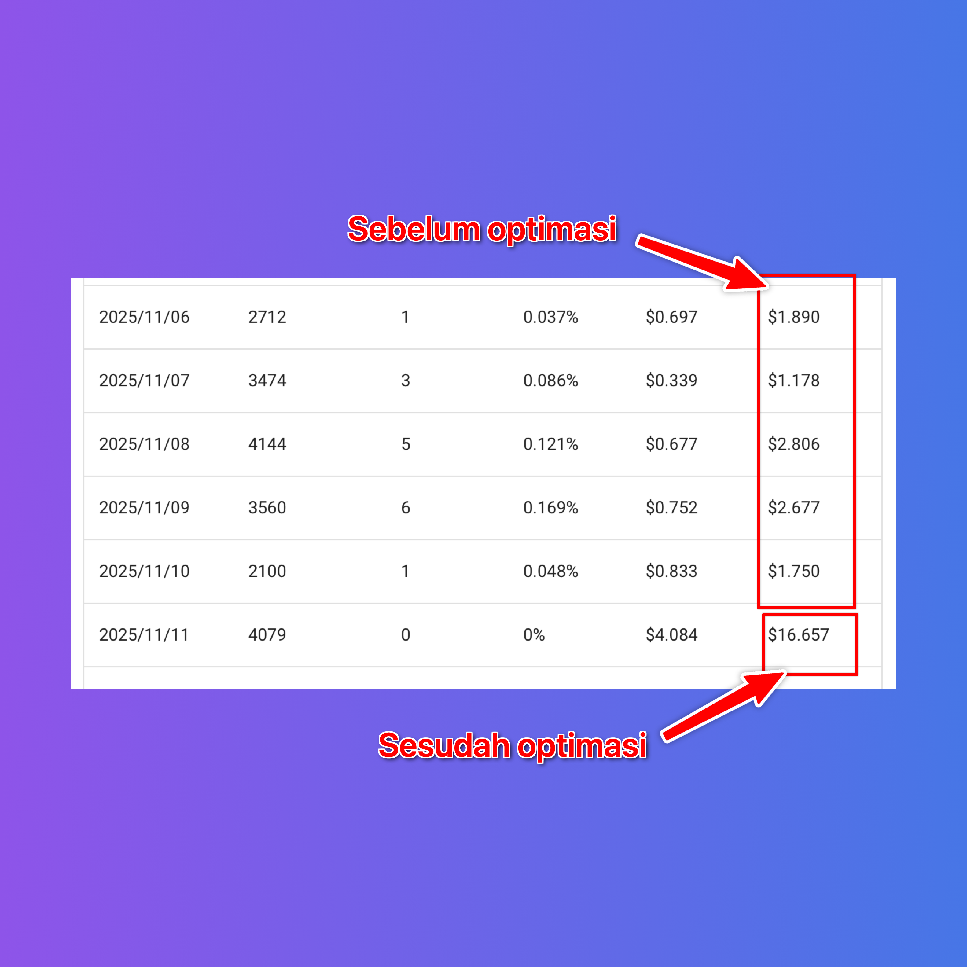 Ini dilakukan tanpa nambah traffic, nambah blog, dll.